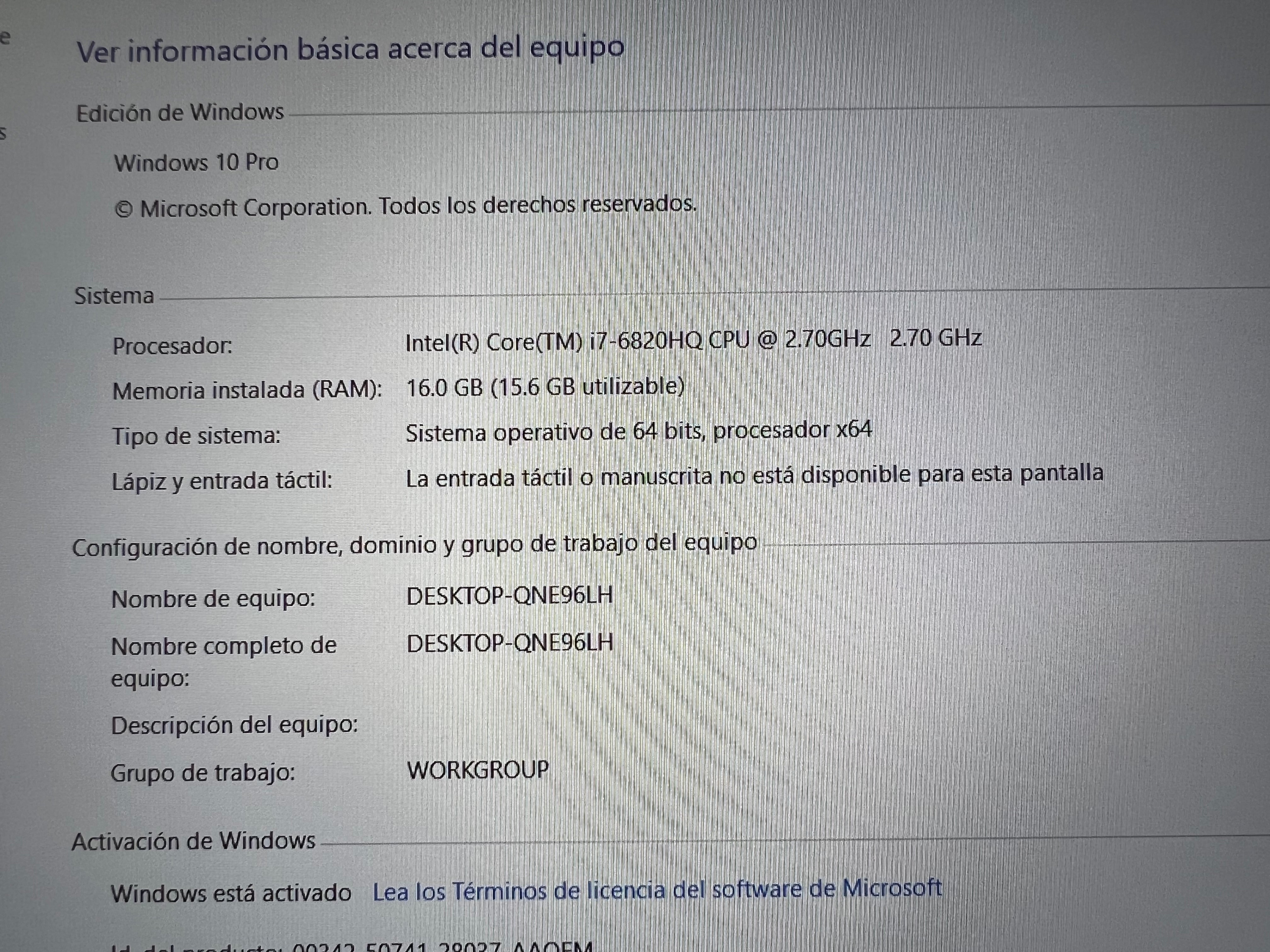 𝐏𝐫𝐨𝐜𝐞𝐬𝐚𝐝𝐨𝐫: Core i7-6820HQ 2.70GHz